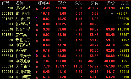 CPO概念盘中强势上扬,截至收盘,源杰科技大涨超14%,盘中一度20%涨停;剑桥科技强势涨停,长光华芯涨超9%,中际旭创、天孚通信涨近8%。